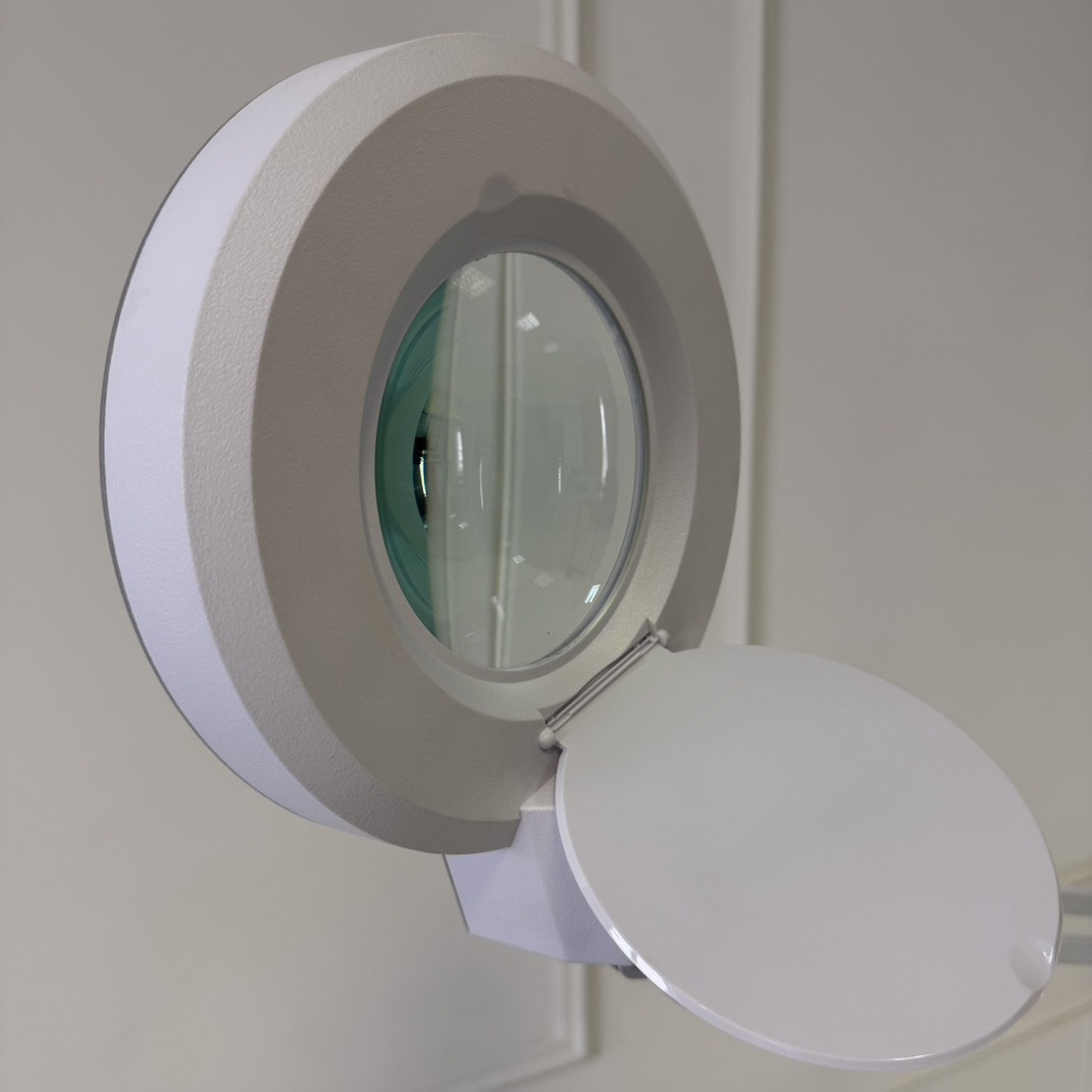 Светодиодная лампа лупа 5 д белая на кронштейне представляет собой важную часть профессионального оборудования косметолога. С помощью такого помощника косметологи оказывают различные услуги. Используют такое оборудование также ювелиры, и специалисты, занимающиеся монтажом различной техники. Конструкция легко фиксируется на столешнице, и тем самым позволяет получить устойчивое положение приспособления в процессе работы.