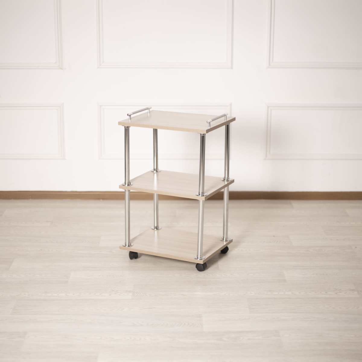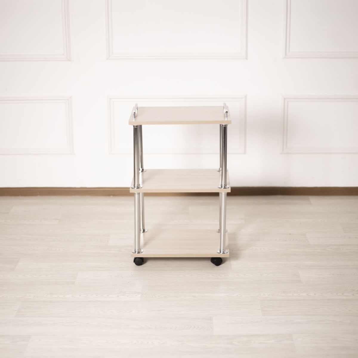 Столик "Эко" выполнен в нейтральном цвете дерева, что позволяет ему гармонично вписаться в любой интерьер салона красоты. Материал обивки - ЛДСП, что делает его прочным и долговечным.