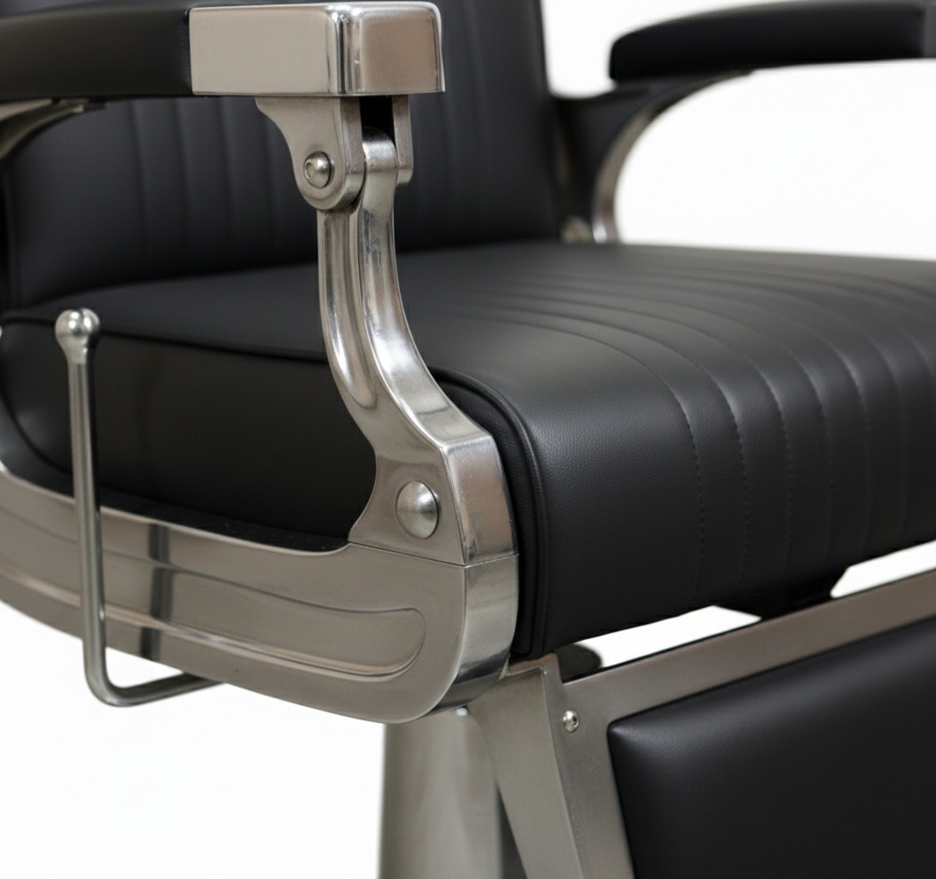 Кресло DIEGO идеально подходит для барбершопов с высокой проходимостью благодаря дублированным рычагам управления. Брутальный внешний вид делает его альтернативным решением для залов в стиле минимализм или хай-тек.