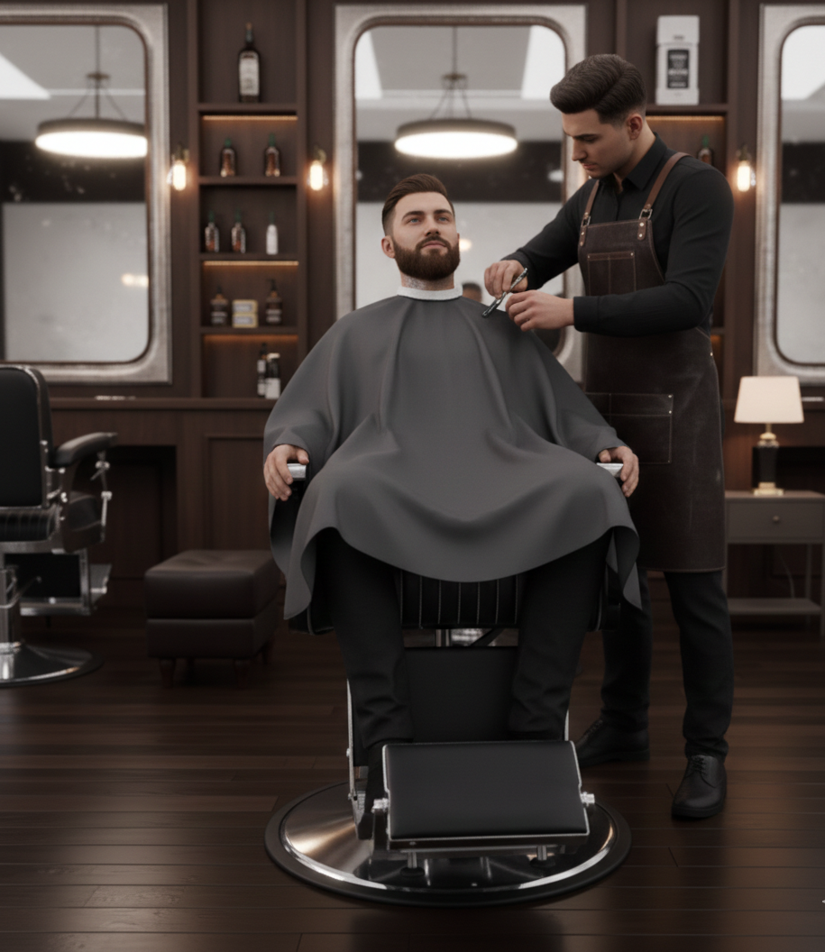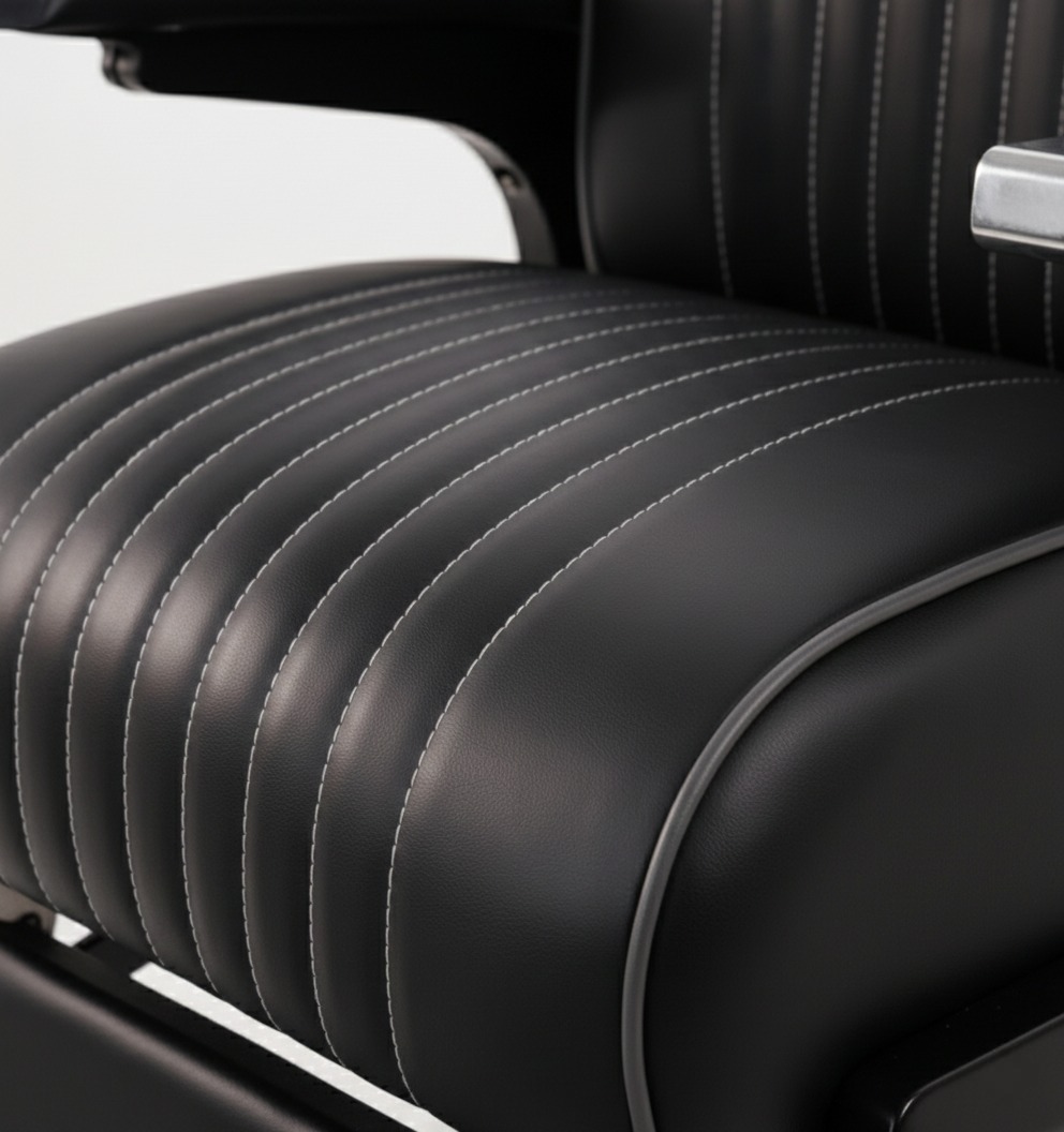 Простота обслуживания: материалы устойчивы к профессиональным дезинфицирующим средствам и легко очищаются от волос, что ускоряет подготовку места к следующему клиенту.