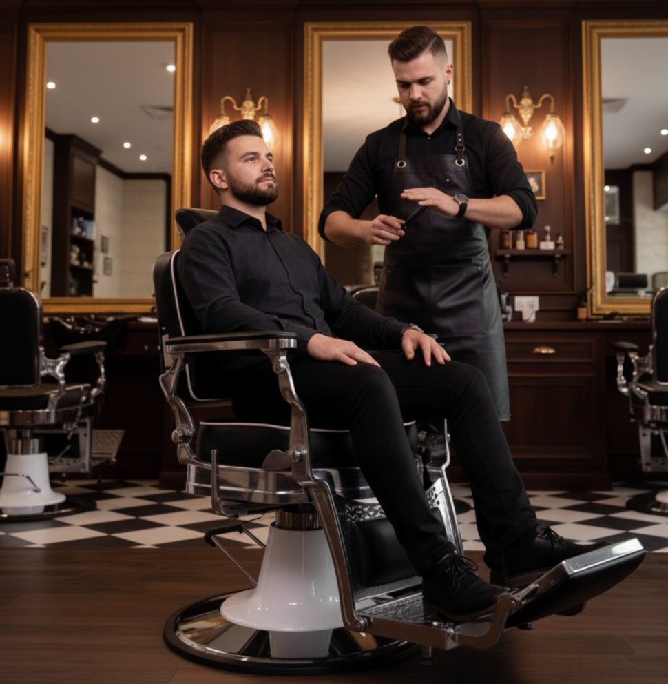 Модель LUKA идеально подходит для премиум-залов с акцентом на традиционное опасное бритье и авторские стрижки. Благодаря эффектному черно-белому исполнению кресло станет центральным элементом интерьера, работая на имидж вашего бренда.