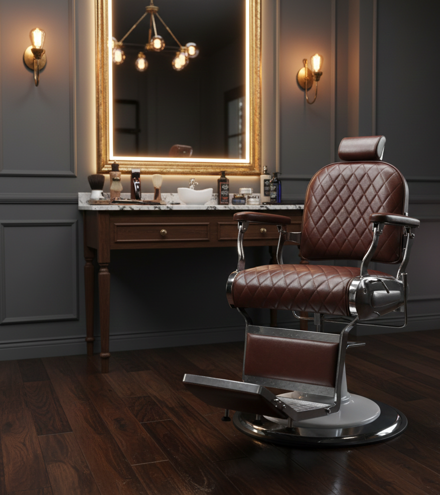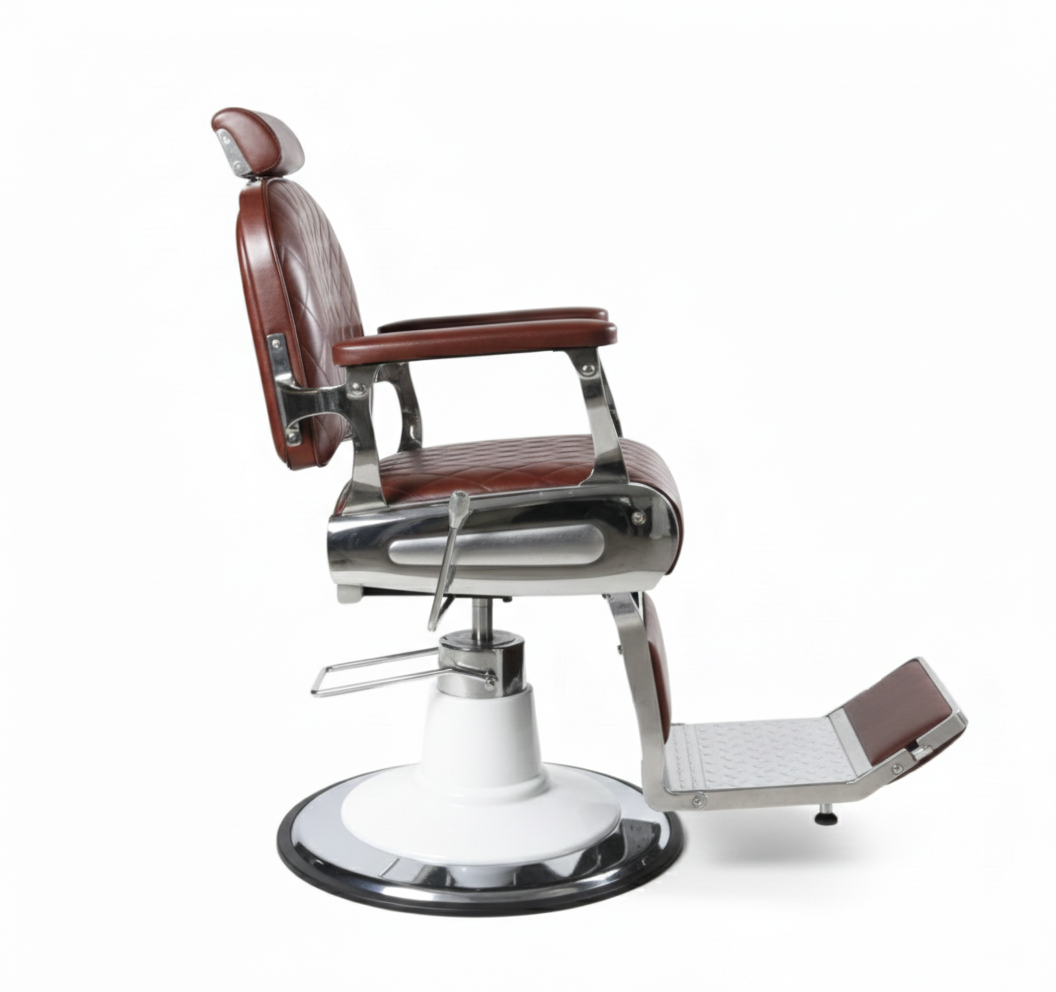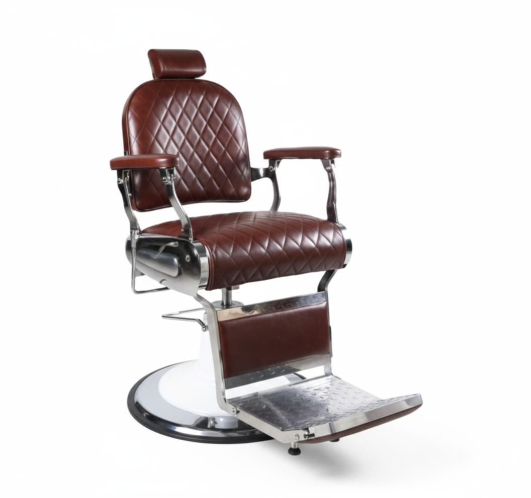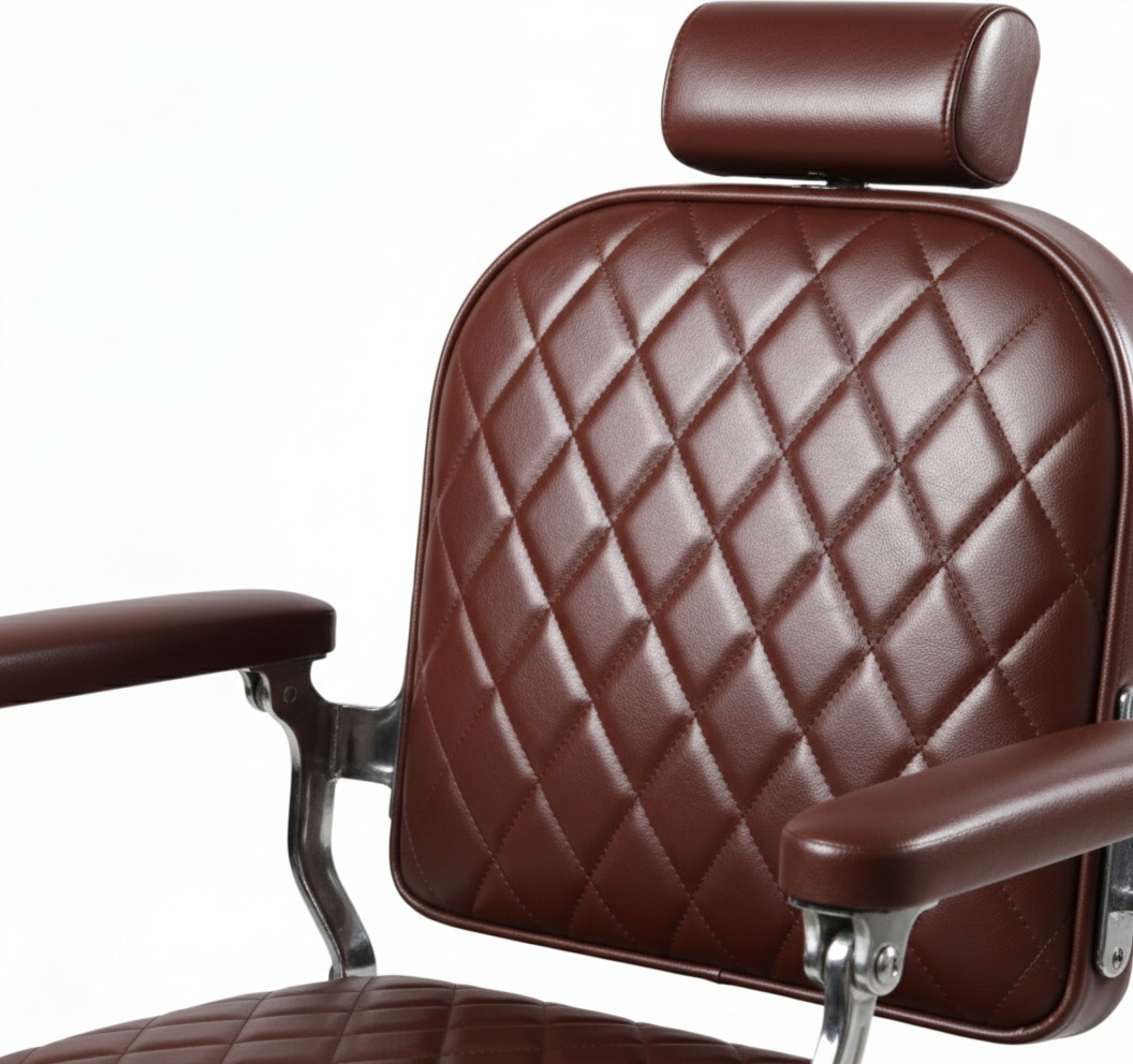 Кресло MAX — это идеальное сочетание эстетики и функциональности для современного барбершопа. Благородные хромированные детали в сочетании с классической ромбовидной строчкой создают атмосферу премиального сервиса, а усиленная конструкция гарантирует окупаемость за счет долговечности механизмов.