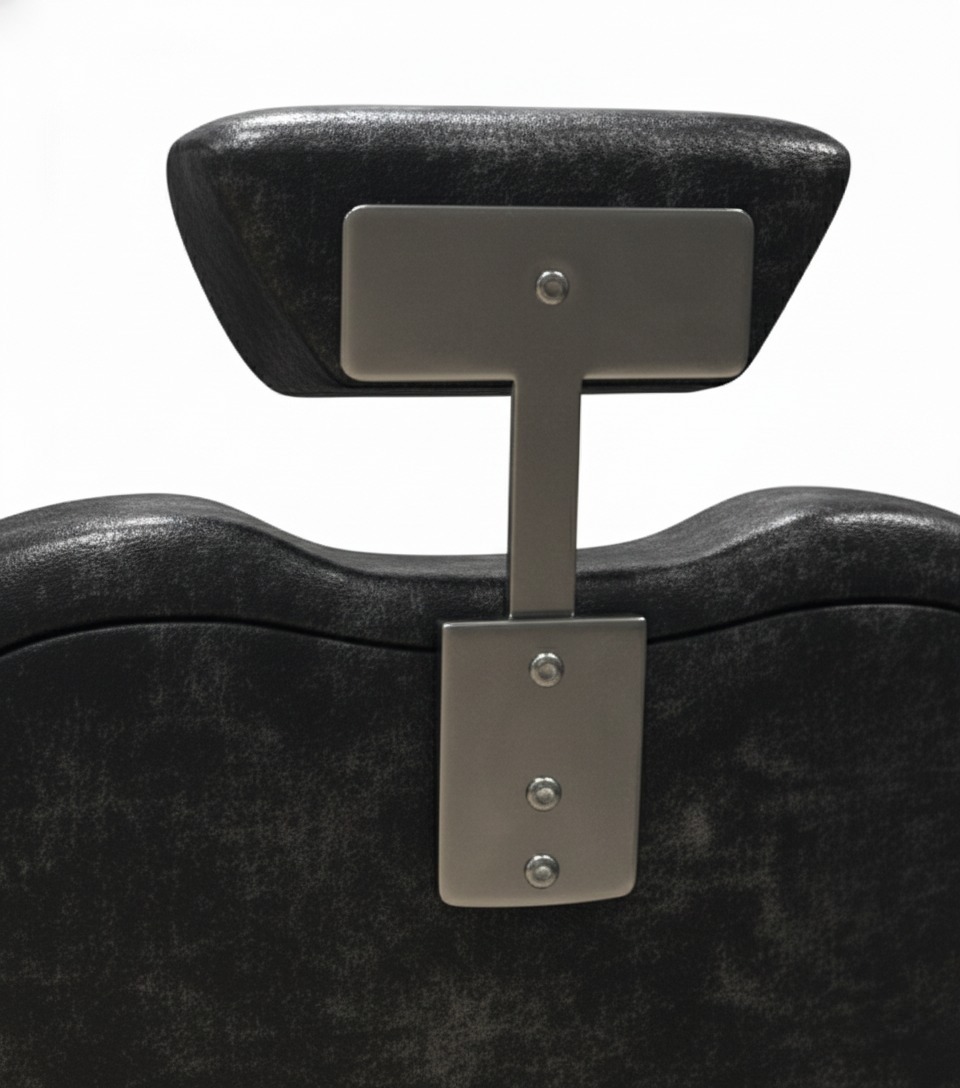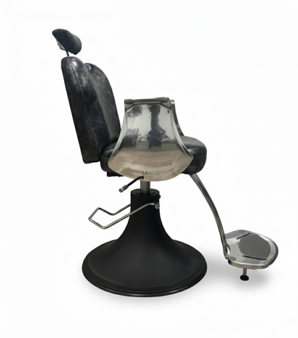 Итальянская надежность и материалы: Основа кресла выполнена из многослойной фанеры, что обеспечивает гибкость и долговечность конструкции. В сочетании с высококачественным полиуретаном кресло сохраняет свою форму и упругость даже через годы эксплуатации. Литой алюминий и хром: Подставка для ног изготовлена из литого алюминия, а подлокотники имеют премиальное хромированное покрытие. Это не только красиво, но и максимально практично — металл устойчив к коррозии и легко поддается чистке. Искусственная кожа S34 высшего качества: Обивка в благородном исполнении S34 тактильно приятна, устойчива к истиранию и воздействию профессиональной косметики. Полный функционал для мастера: * Гидравлика с блокировкой на массивном черном диске — никакой раскачки при работе. Регулируемая спинка и выдвижной подголовник для идеального позиционирования клиента при оформлении бороды. Компактная мощь: При габаритах 115x67x95 см кресло выглядит аккуратно, не загромождая пространство, но при этом обеспечивает полноценный комфорт для клиента.