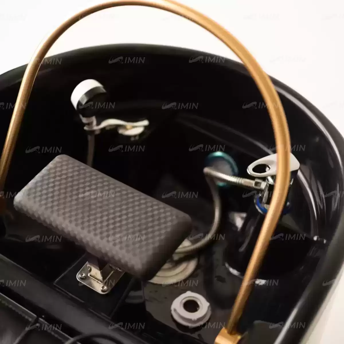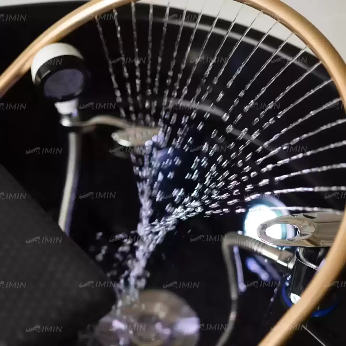Для улучшения состояния кожи головы и усиления эффекта косметических средств кресло оснащено системой паровой бани и циркуляционной системой подачи воды через дугу с регулировкой температуры. Мощный проточный водонагреватель (7 кВт) мгновенно нагревает воду даже без центрального ГВС, а встроенная парикмахерская лейка делает любые процедуры удобными. Обшивка ложа и корпуса кресла выполнена из износостойкий экокожи.