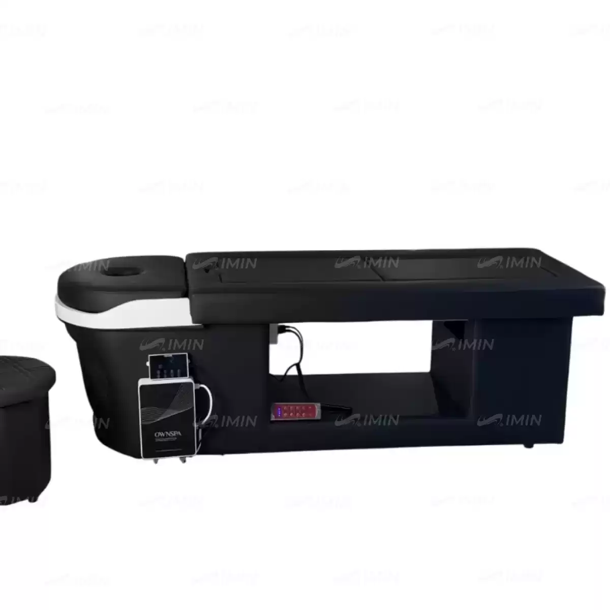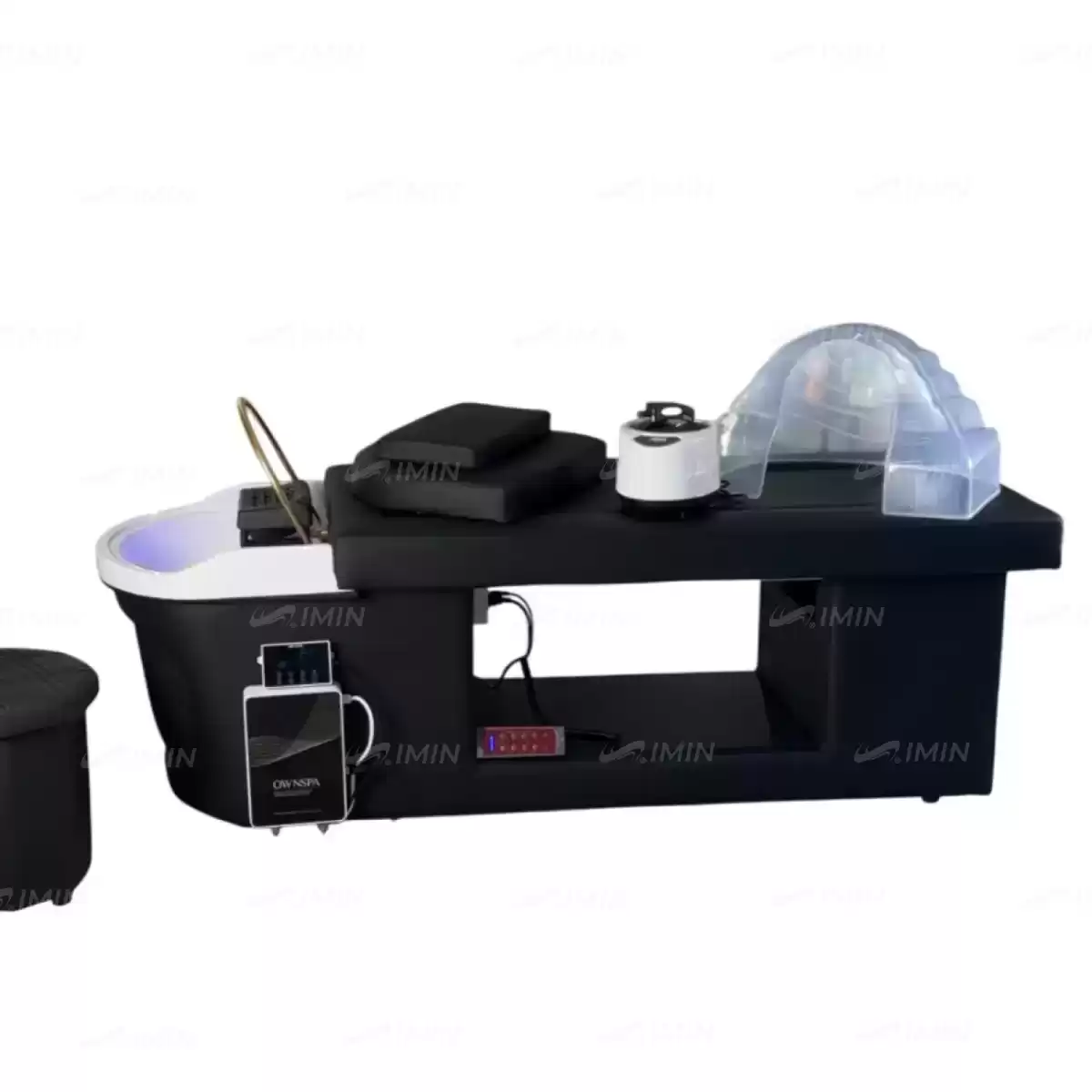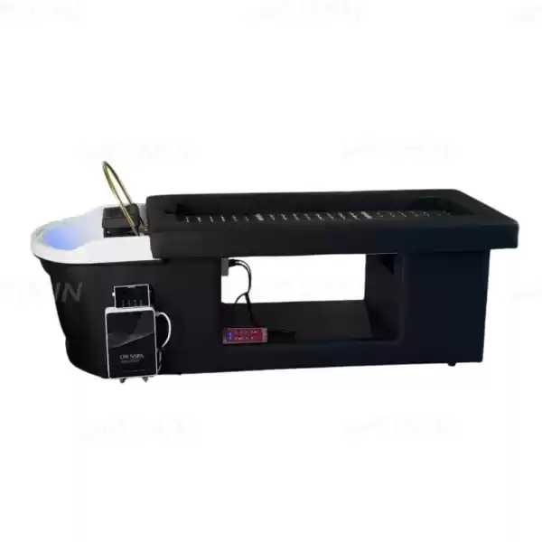 Для улучшения общего состояния кожи головы кушетка оснащена системой паровой бани, а также циркуляционной системой с подачей воды через дугу с возможностью регулировки температуры. Мощный проточный водонагреватель на 7 кВт позволяет мгновенно нагревать воду даже при отсутствии центрального ГВС, а интегрированная парикмахерская лейка делает процедуры ещё удобнее.