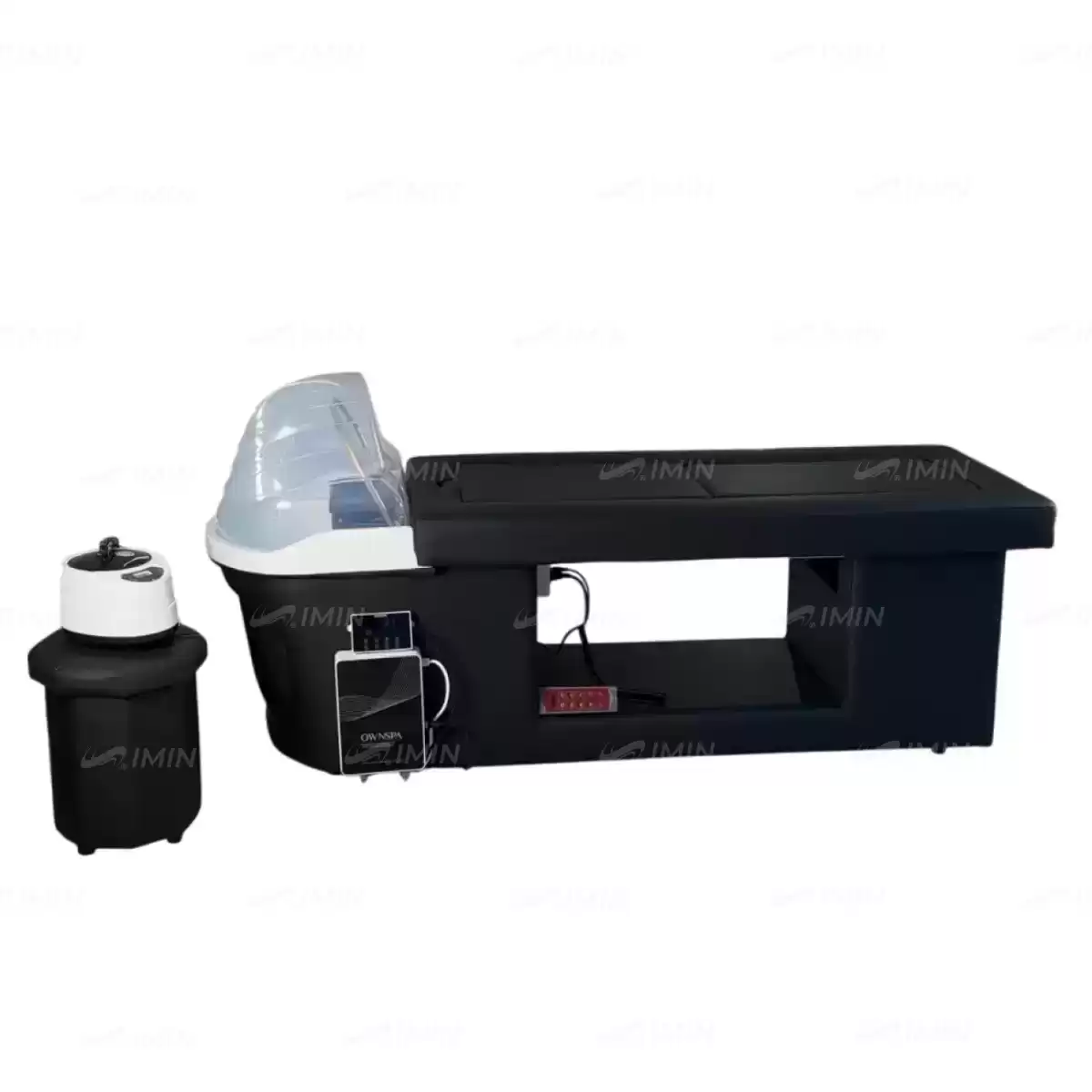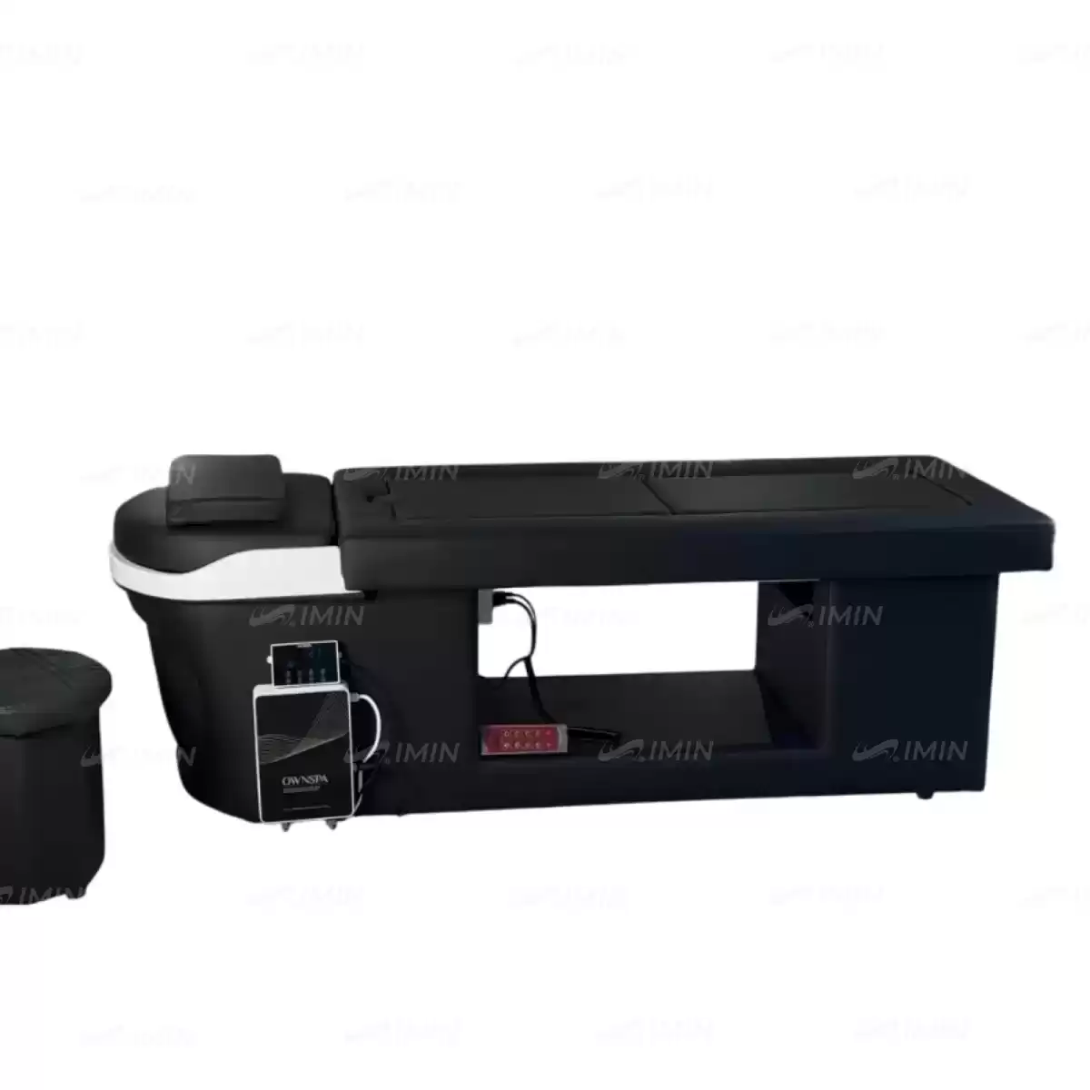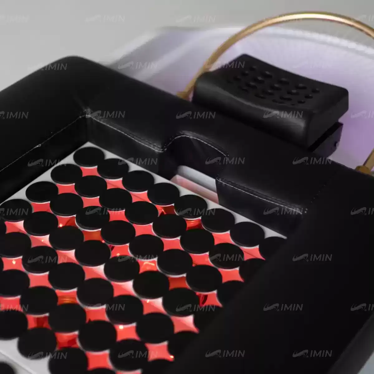 Для улучшения общего состояния кожи головы кушетка оснащена системой паровой бани, а также циркуляционной системой с подачей воды через дугу с возможностью регулировки температуры. Мощный проточный водонагреватель на 7 кВт позволяет мгновенно нагревать воду даже при отсутствии центрального ГВС, а интегрированная парикмахерская лейка делает процедуры ещё удобнее.