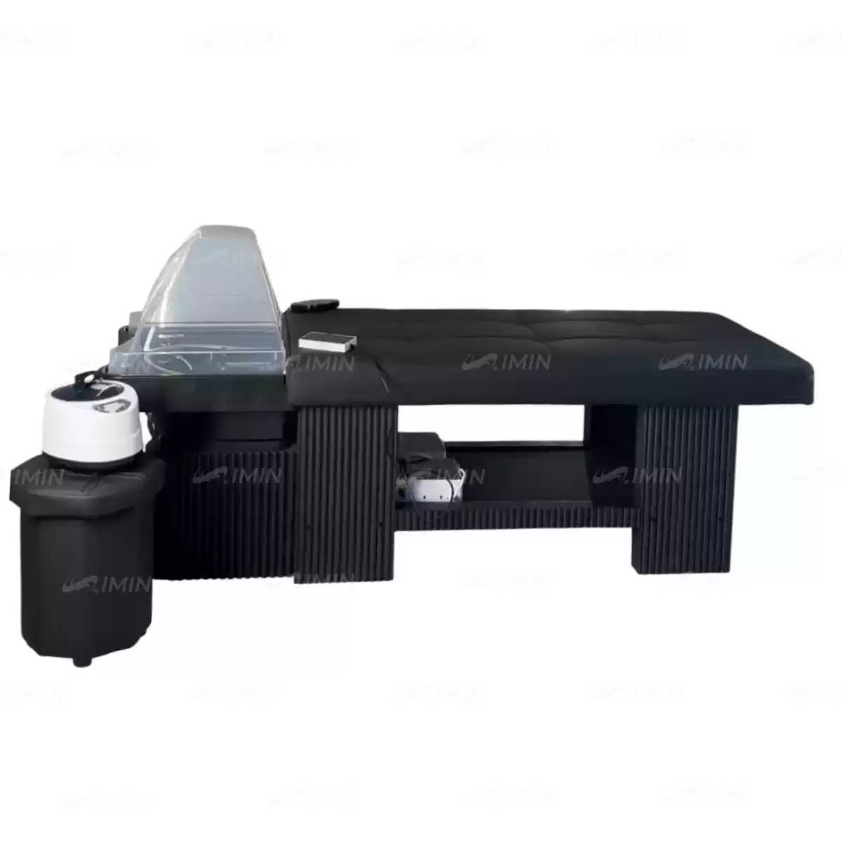 Заслуженный бестселлер благодаря своему уникальному дизайну из рефленого пластика и стильной черной раковины. Идеально подойдёт для услуг: от обычного мытья волос и массажа до трихологических услуг. Её доступная цена и элегантный дизайн делают её идеальным выбором для салонов, которые хотят предложить клиентам максимум комфорта без лишних затрат. Корпус из надежного пластика HPL с удобным ложе обшитым кожей PU класса, раковина квадратной формы выполнена из черного акрила.