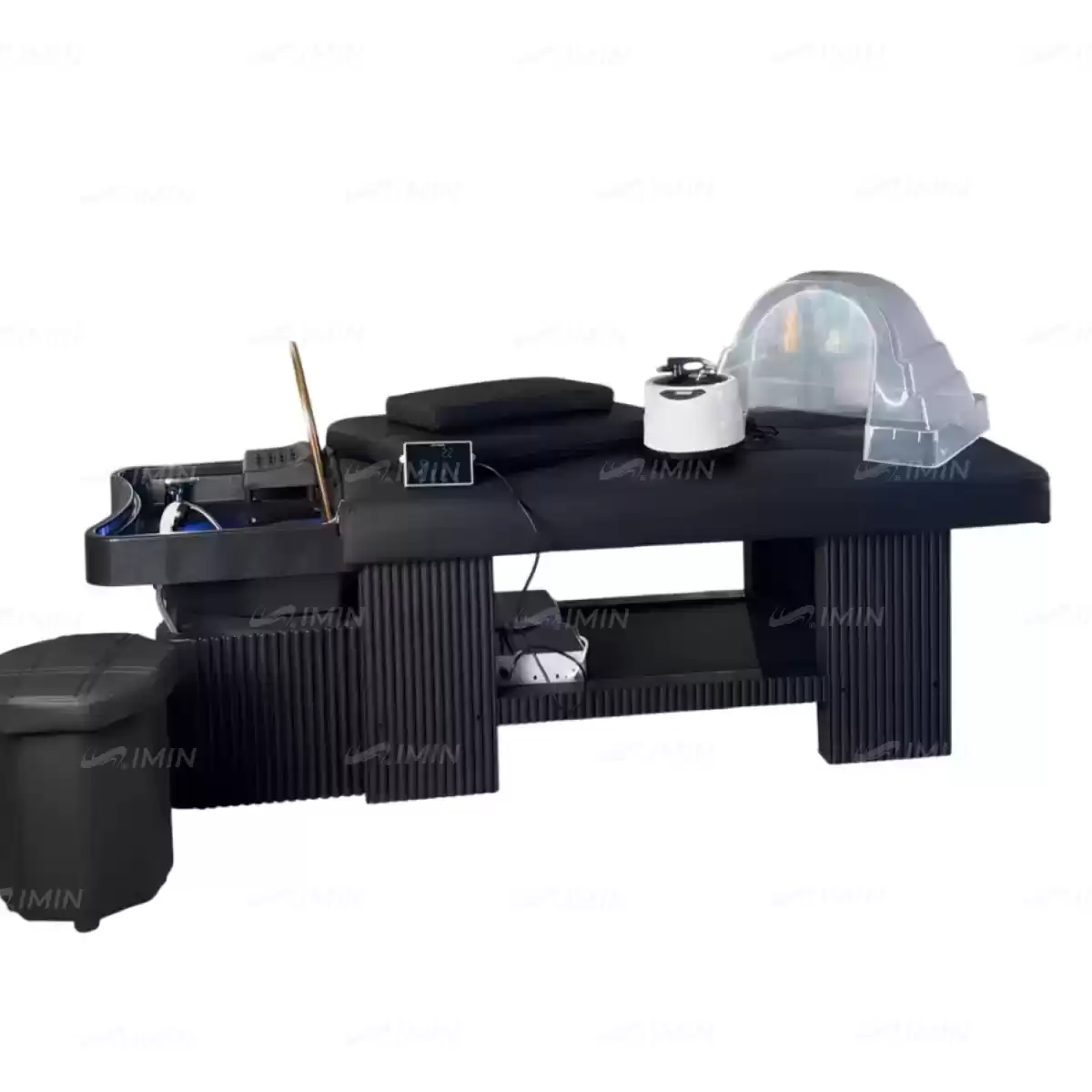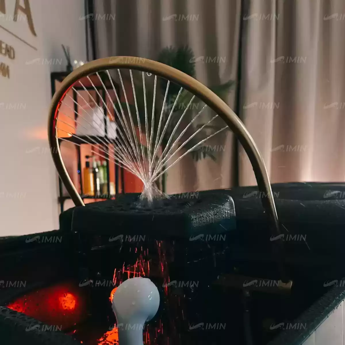 Для улучшения общего состояния кожи головы кушетка оснащена системой паровой бани, а также циркуляционной системой с подачей воды через дугу с возможностью регулировки температуры. Мощный проточный водонагреватель на 7 кВт позволяет мгновенно нагревать воду даже при отсутствии центрального ГВС, а интегрированная парикмахерская лейка делает процедуры ещё удобнее.