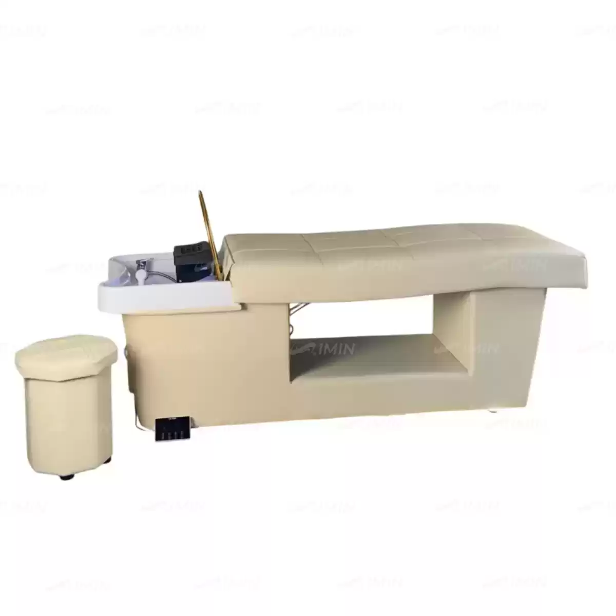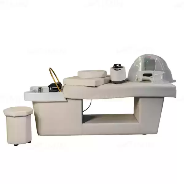 Для улучшения общего состояния кожи головы кушетка оснащена системой паровой бани, а также циркуляционной системой с подачей воды через дугу с возможностью регулировки температуры. Мощный проточный водонагреватель на 7 кВт позволяет мгновенно нагревать воду даже при отсутствии центрального ГВС, а интегрированная парикмахерская лейка делает процедуры ещё удобнее.