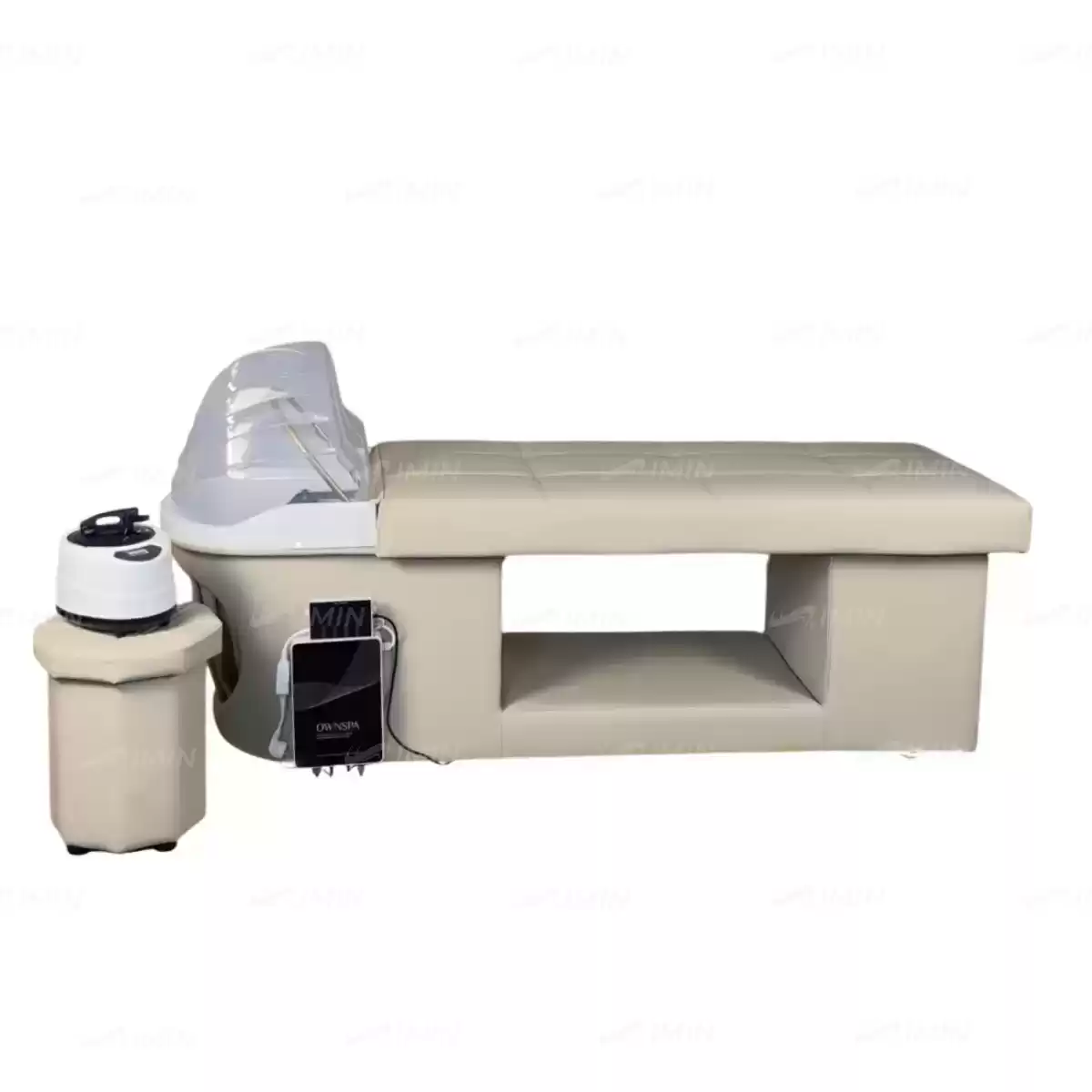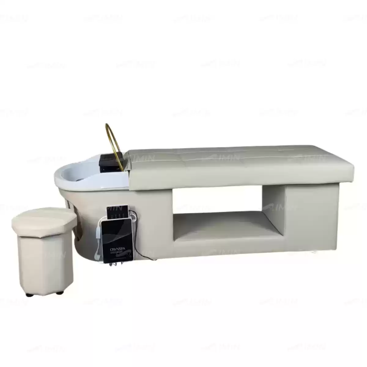 Для улучшения общего состояния кожи головы кушетка оснащена системой паровой бани, а также циркуляционной системой с подачей воды через дугу с возможностью регулировки температуры. Мощный проточный водонагреватель на 7 кВт позволяет мгновенно нагревать воду даже при отсутствии центрального ГВС, а интегрированная парикмахерская лейка делает процедуры ещё удобнее.