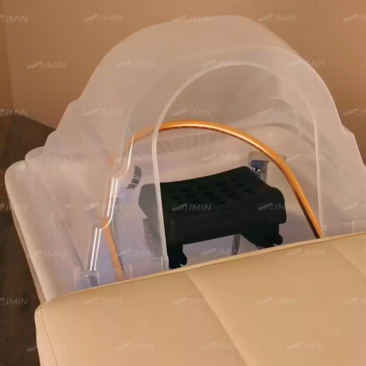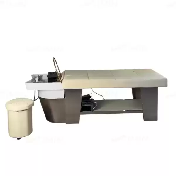 Для улучшения общего состояния кожи головы кушетка оснащена системой паровой бани, а также циркуляционной системой с подачей воды через дугу с возможностью регулировки температуры. Мощный проточный водонагреватель на 7 кВт позволяет мгновенно нагревать воду даже при отсутствии центрального ГВС, а интегрированная парикмахерская лейка делает процедуры ещё удобнее.