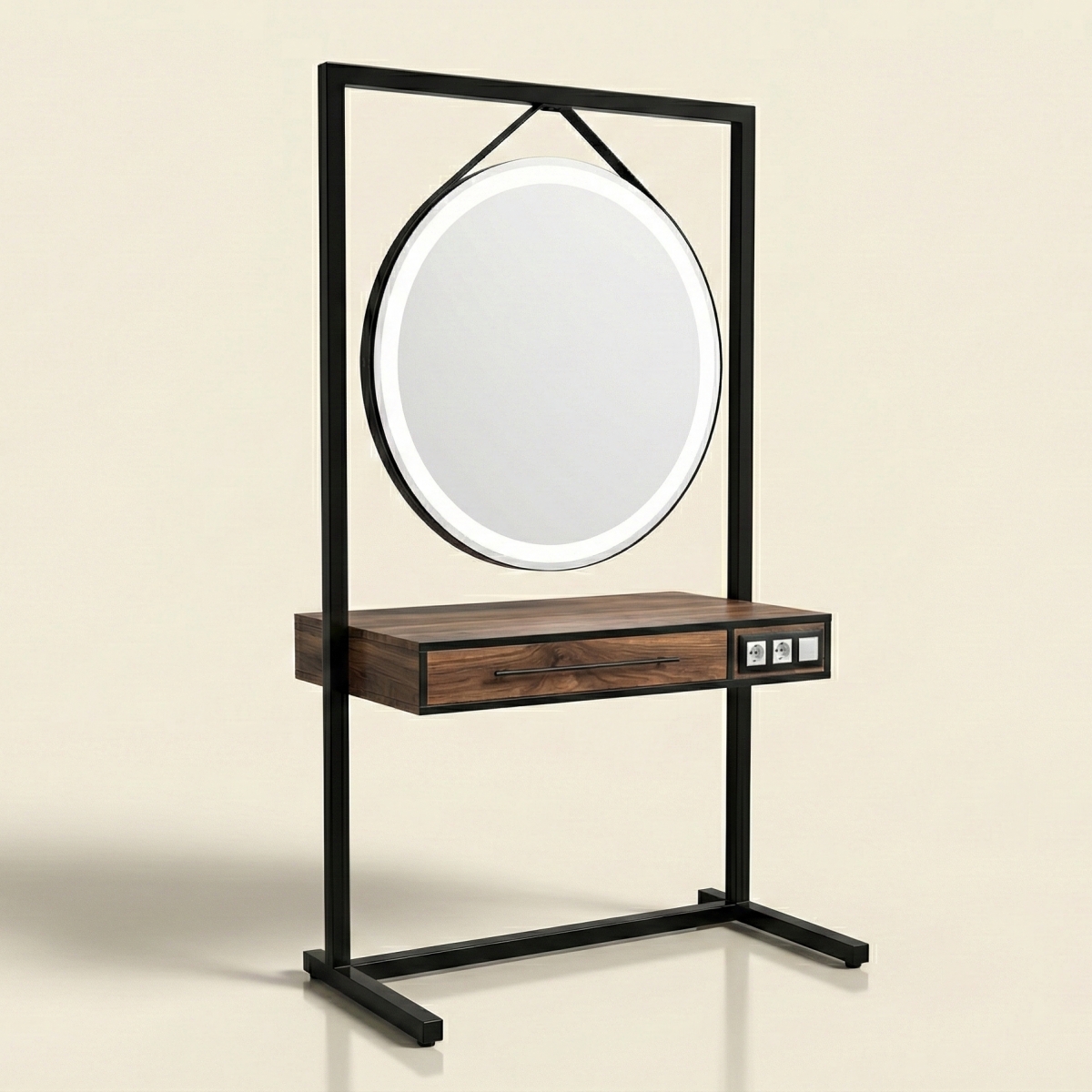 Это зеркало сочетает в себе и стиль и удобство. Идеально для работы парикмахера и визажиста.