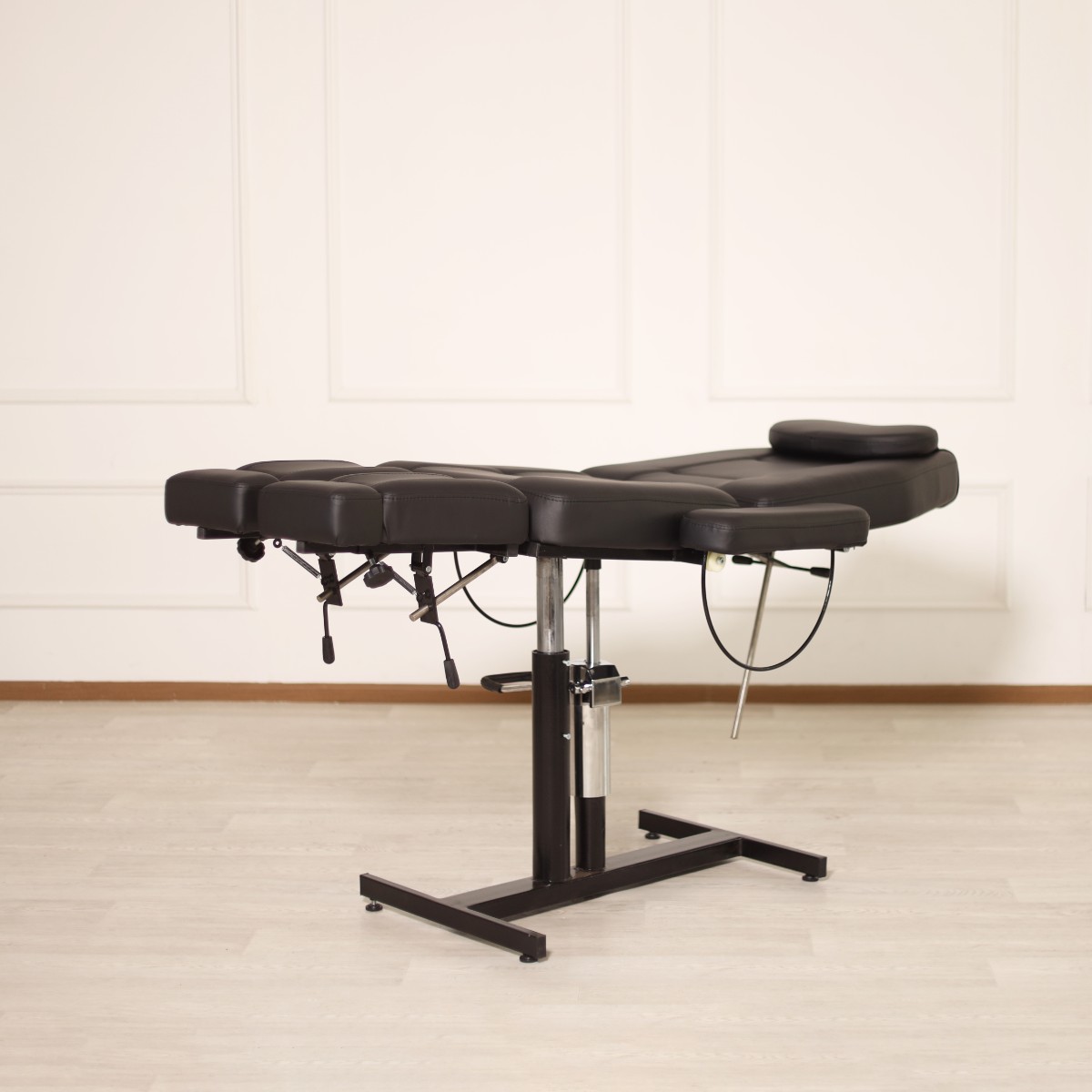 Гидравлический подъемный механизм позволяет без особого труда регулировать высоту конструкции, исходя из роста клиента. Остальные части регулируются за счет обычных механизмов.