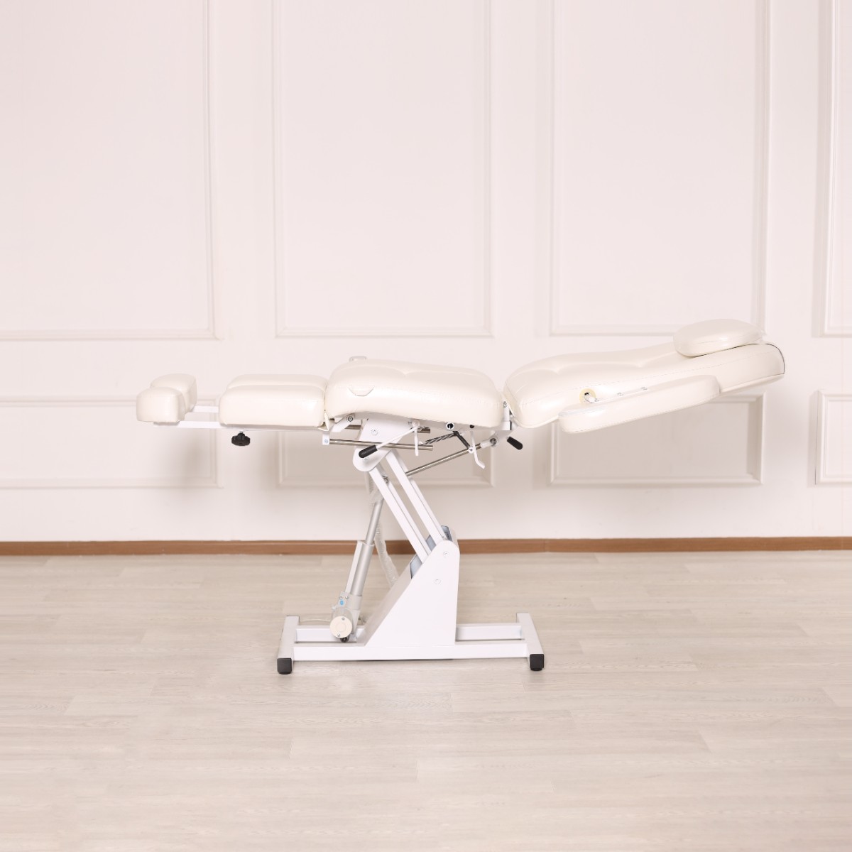 Конструкция выполнена из качественного металла, и обладает механизмом, позволяющим регулировать положение спинки и опоры для ступней. Работать в таком кресле мастер может с человеком любого роста. Конструктивные особенности