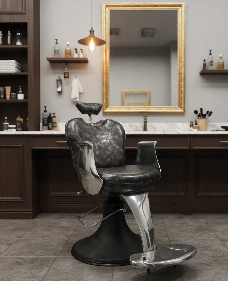Итальянская надежность и материалы: Основа кресла выполнена из многослойной фанеры, что обеспечивает гибкость и долговечность конструкции. В сочетании с высококачественным полиуретаном кресло сохраняет свою форму и упругость даже через годы эксплуатации. Литой алюминий и хром: Подставка для ног изготовлена из литого алюминия, а подлокотники имеют премиальное хромированное покрытие. Это не только красиво, но и максимально практично — металл устойчив к коррозии и легко поддается чистке. Искусственная кожа S34 высшего качества: Обивка в благородном исполнении S34 тактильно приятна, устойчива к истиранию и воздействию профессиональной косметики. Полный функционал для мастера: * Гидравлика с блокировкой на массивном черном диске — никакой раскачки при работе. Регулируемая спинка и выдвижной подголовник для идеального позиционирования клиента при оформлении бороды. Компактная мощь: При габаритах 115x67x95 см кресло выглядит аккуратно, не загромождая пространство, но при этом обеспечивает полноценный комфорт для клиента.